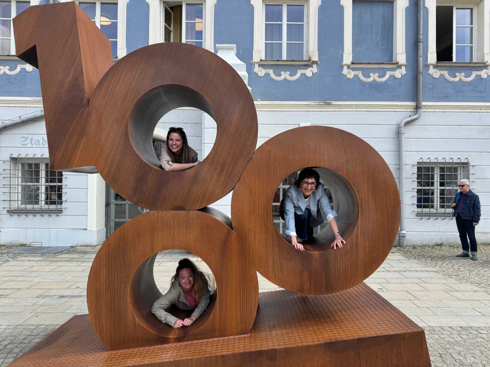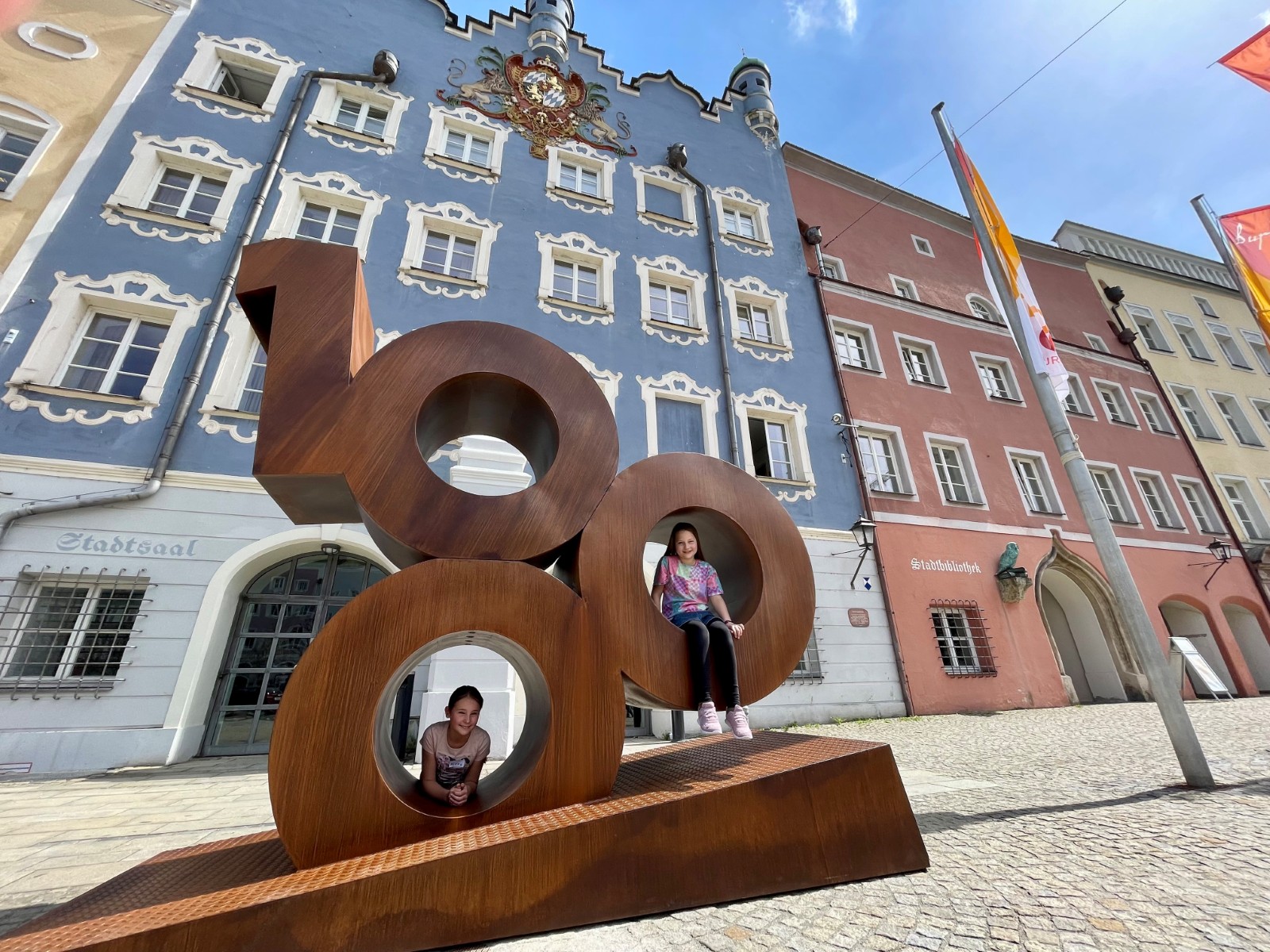 Die wetterfeste Skulptur ist als zentrales Symbol des 1000-jährigen Jubiläumsjahres konzipiert und soll im Lauf des Jahres an verschiedenen Orten im Stadtgebiet zum Einsatz kommen. Als offizieller Fotopunkt lädt sie Bürger sowie Gäste ein, persönliche Erinnerungen an das Festjahr festzuhalten. Am Stadtplatz ist der Hintergrund das markante Stadtsaalgebäude.